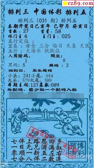 2020年031期牛彩网体彩P3画迷图谜汇总分享