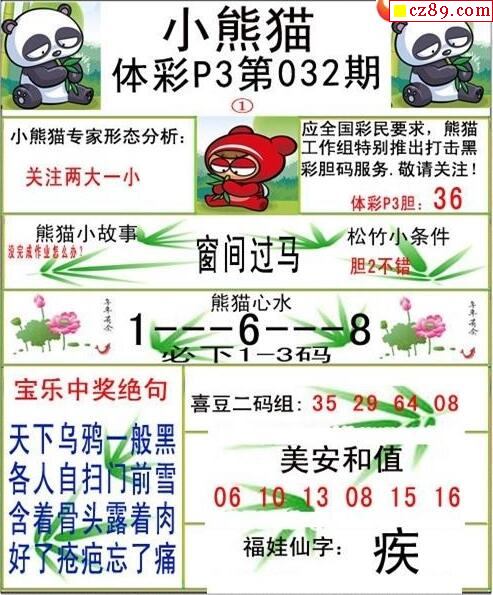 小熊猫2025339期体彩P3图谜
