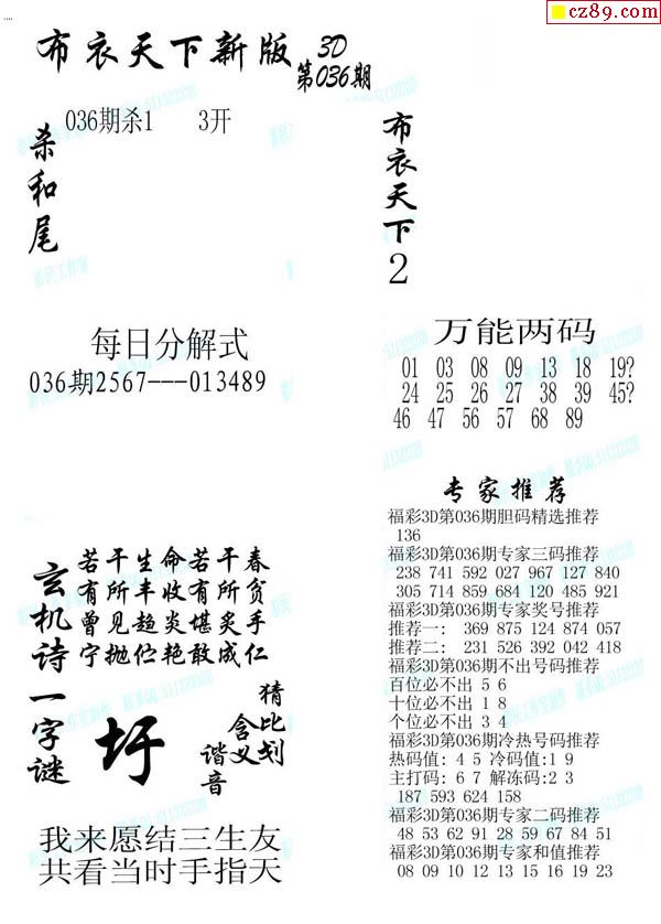 2026036期3D图谜汇总(一)