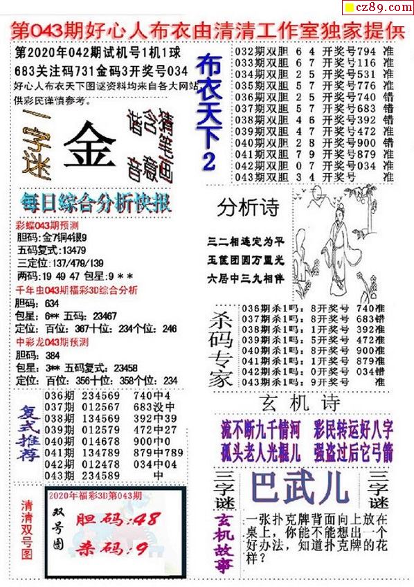 牛彩版3D字谜彩报图26年031期打印版