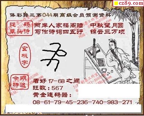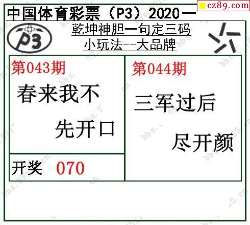 2020年044期牛彩网体彩P3画迷图谜汇总分享