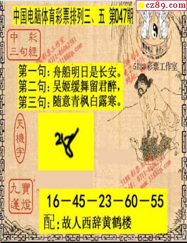 2020年047期牛彩网体彩P3画迷图谜汇总分享