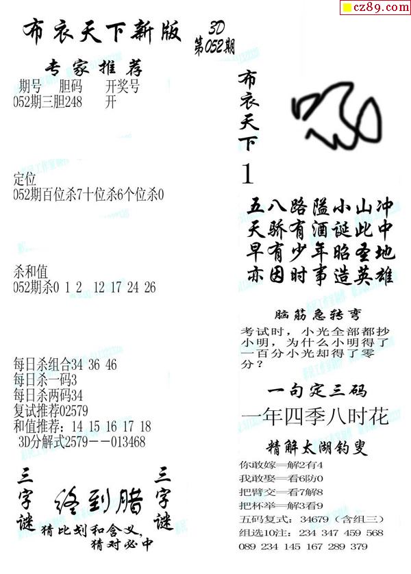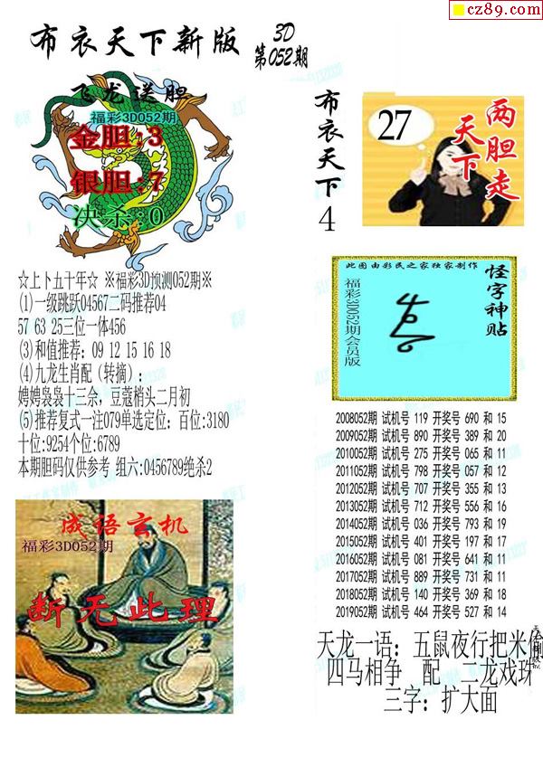 福彩3D2025334期 祁连牧哥百财纳福胆码图谜推荐
