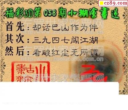 2026049期解太湖3d字图迷汇总报