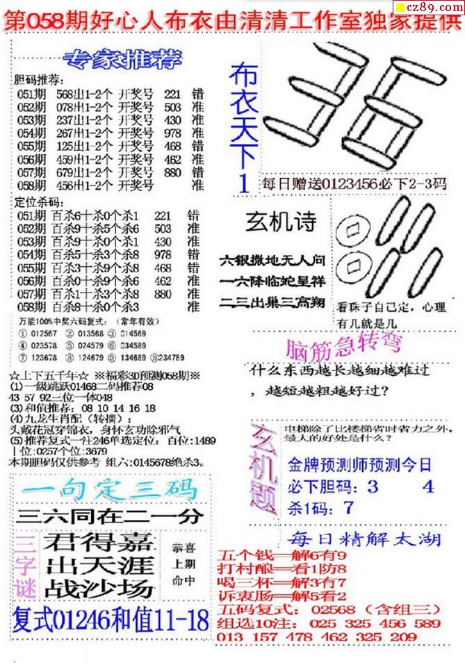 2020058期3D图谜汇总(八)