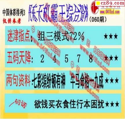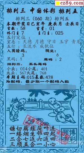 2020年060期牛彩网体彩P3画迷图谜汇总分享