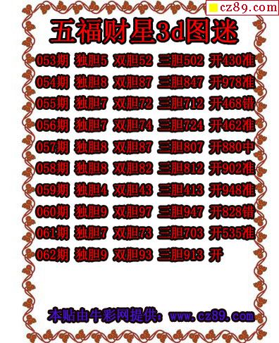 福彩3D2026067期牛彩图谜预测汇总