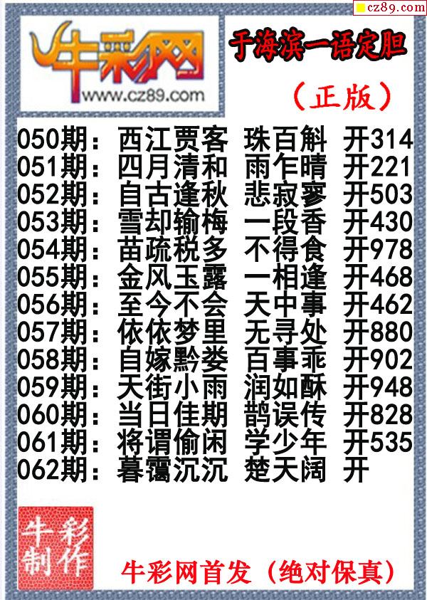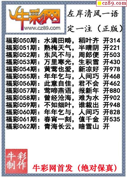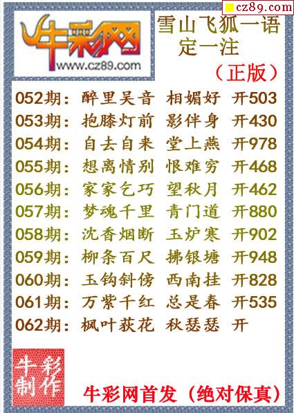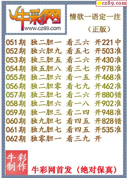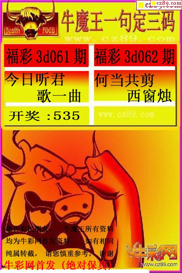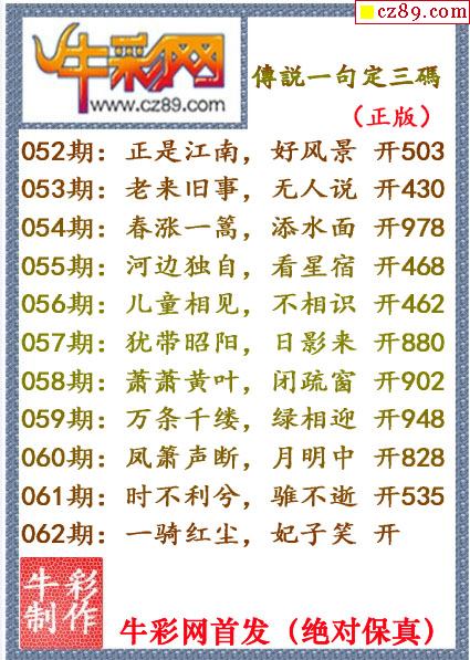 牛彩版3D字谜彩报图26年067期打印版