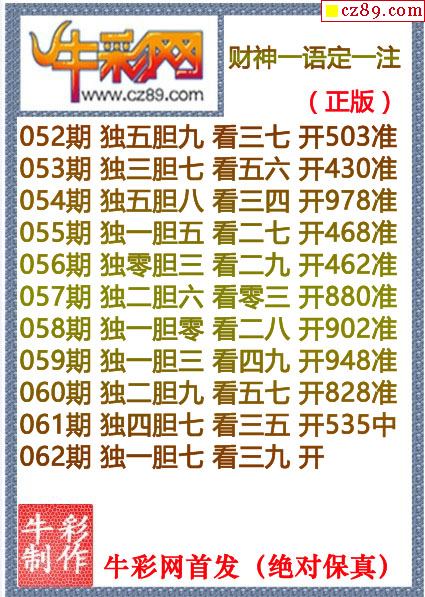 牛彩版3D预测彩报图26年067期打印版