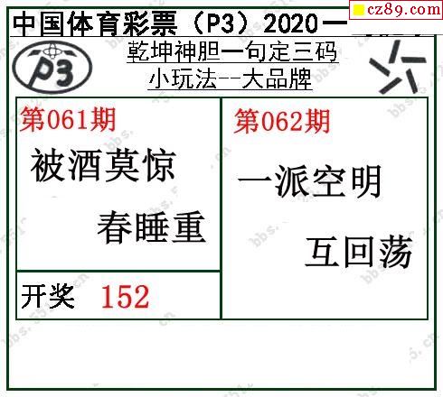 2020年062期牛彩网体彩P3画迷图谜汇总分享