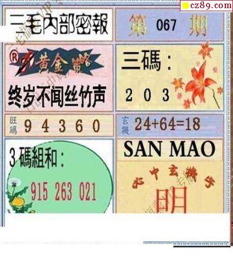 三毛图2020067期3d图谜