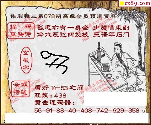 2020年078期牛彩网体彩P3画迷图谜汇总分享