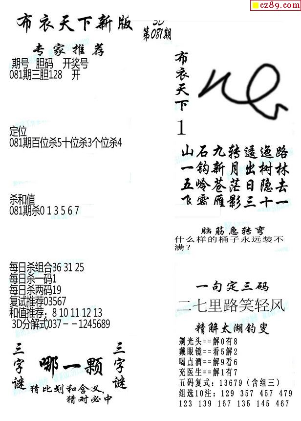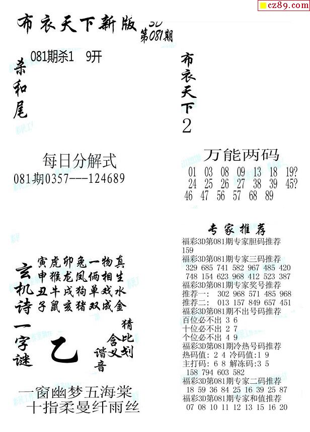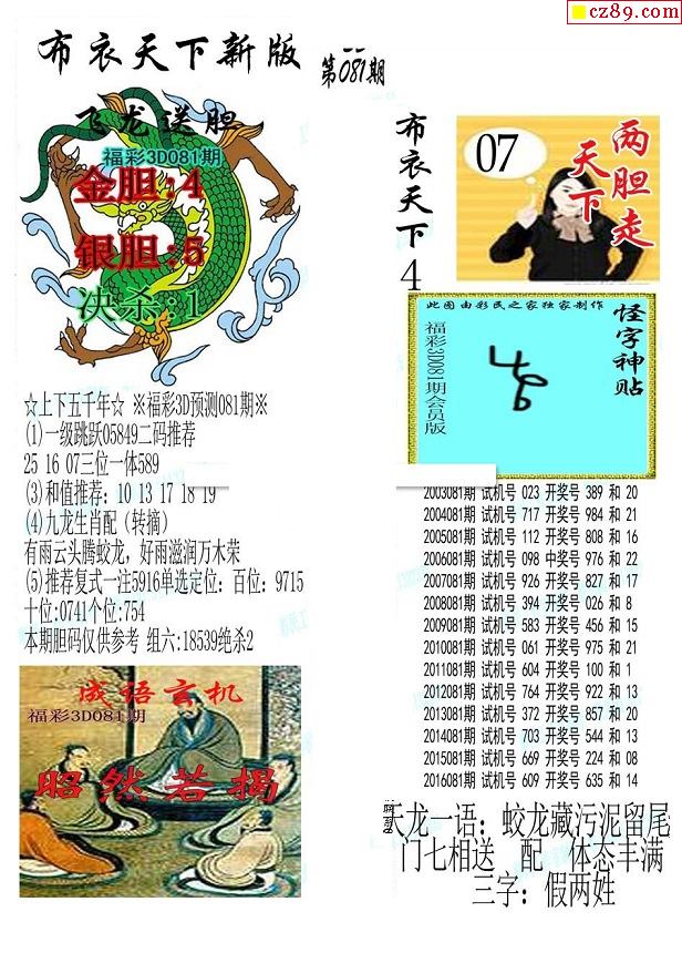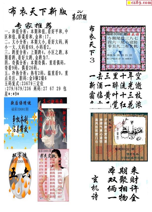 福彩3D2025337期 祁连牧哥百财纳福胆码图谜推荐