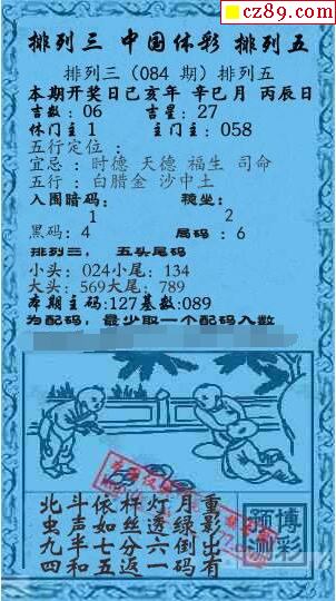 2020年084期牛彩网体彩P3画迷图谜汇总分享