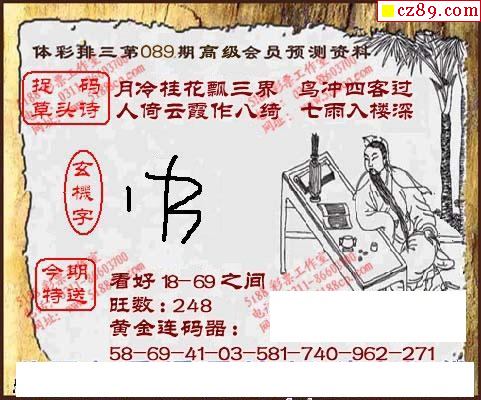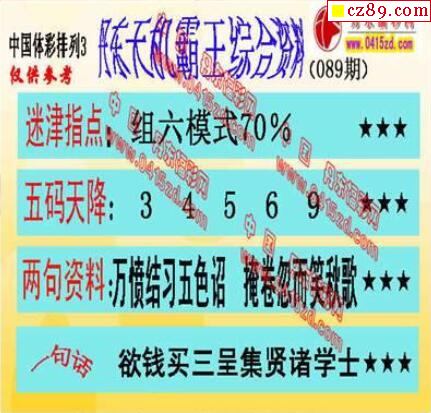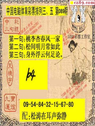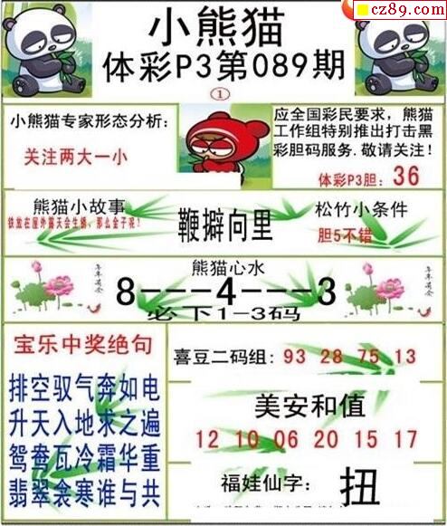 2020年089期牛彩网体彩P3画迷图谜汇总分享