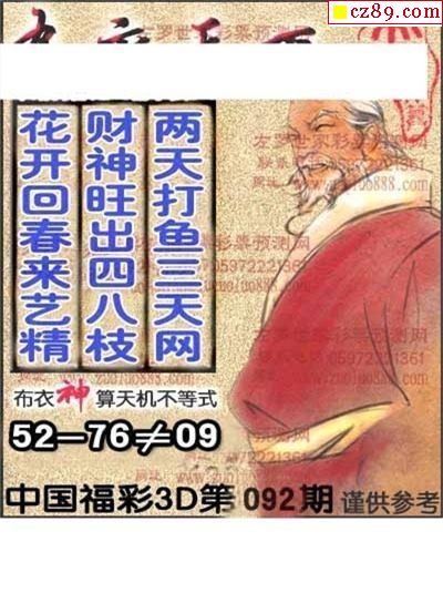 福彩3D2025337期 祁连牧哥百财纳福胆码图谜推荐