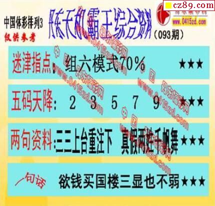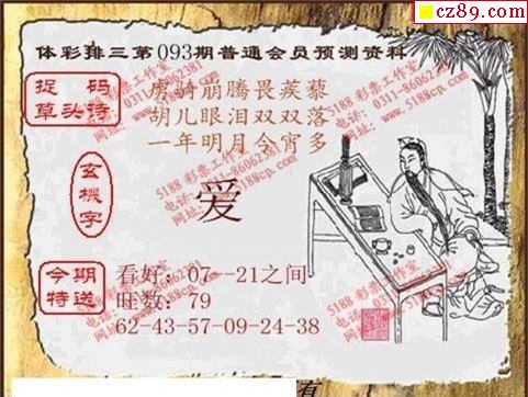 2020年093期牛彩网体彩P3画迷图谜汇总分享