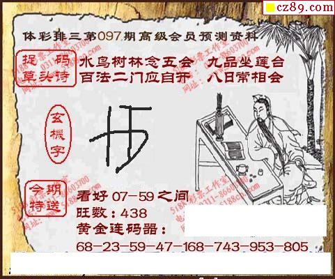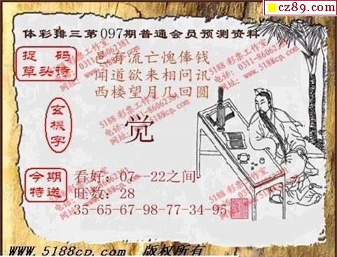 2020年097期牛彩网体彩P3画迷图谜汇总分享