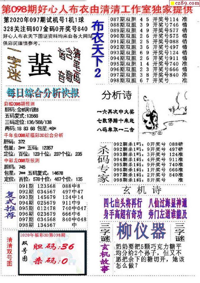 福彩3D2025332期 祁连牧哥百财纳福胆码图谜推荐