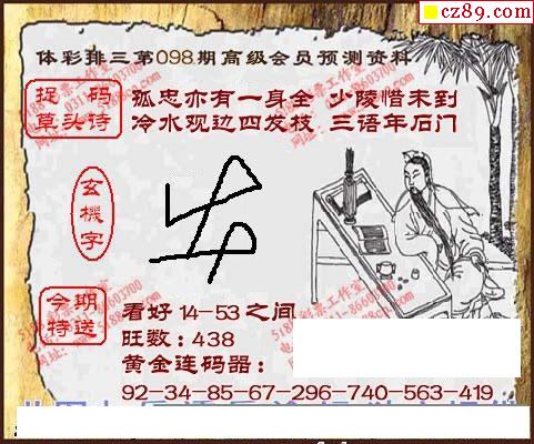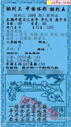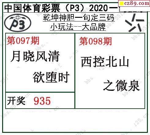 2020年098期牛彩网体彩P3画迷图谜汇总分享