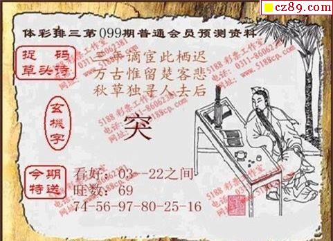 2020年099期牛彩网体彩P3画迷图谜汇总分享