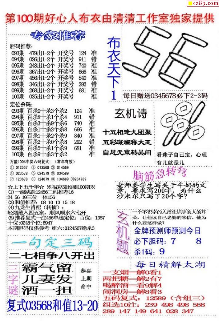 牛彩版3D字谜彩报图25年341期打印版
