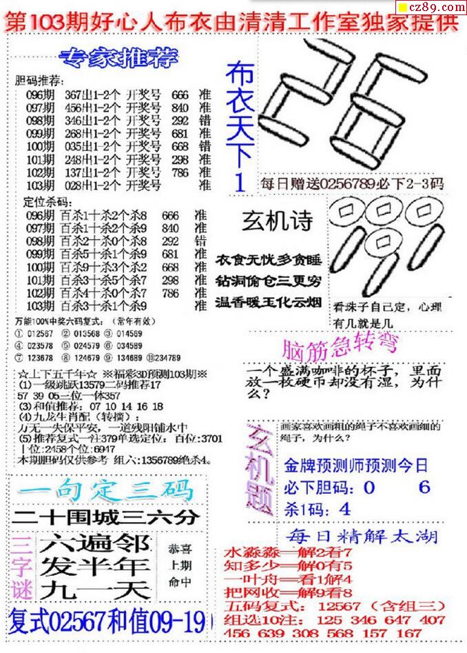 福彩3D2025341期 祁连牧哥百财纳福胆码图谜推荐