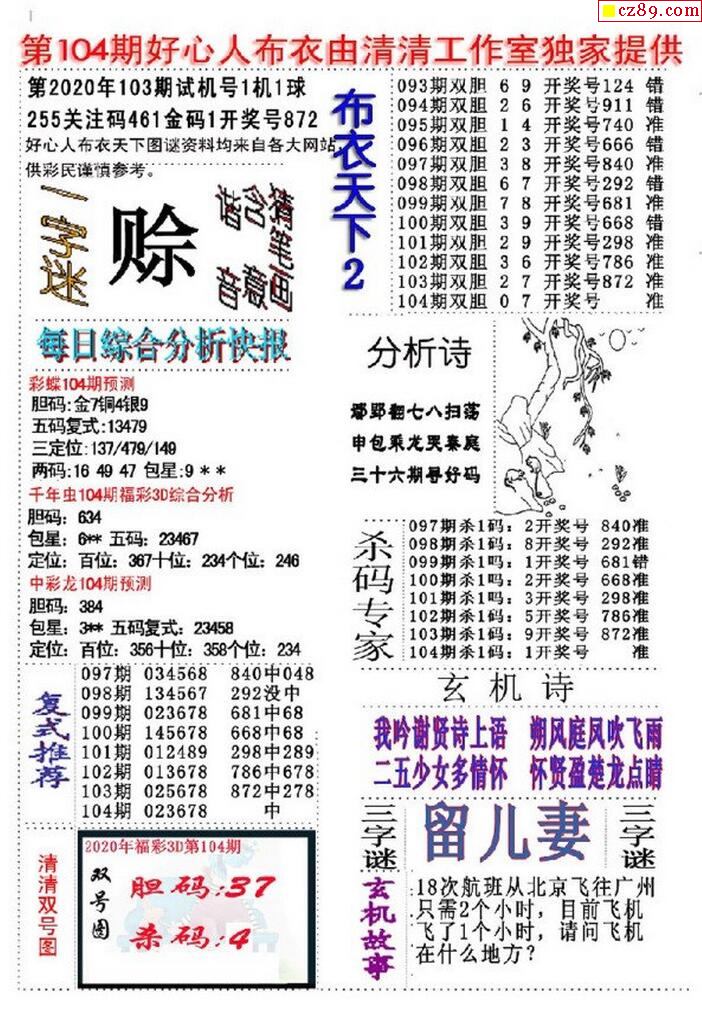 牛彩版3D字谜彩报图25年341期打印版
