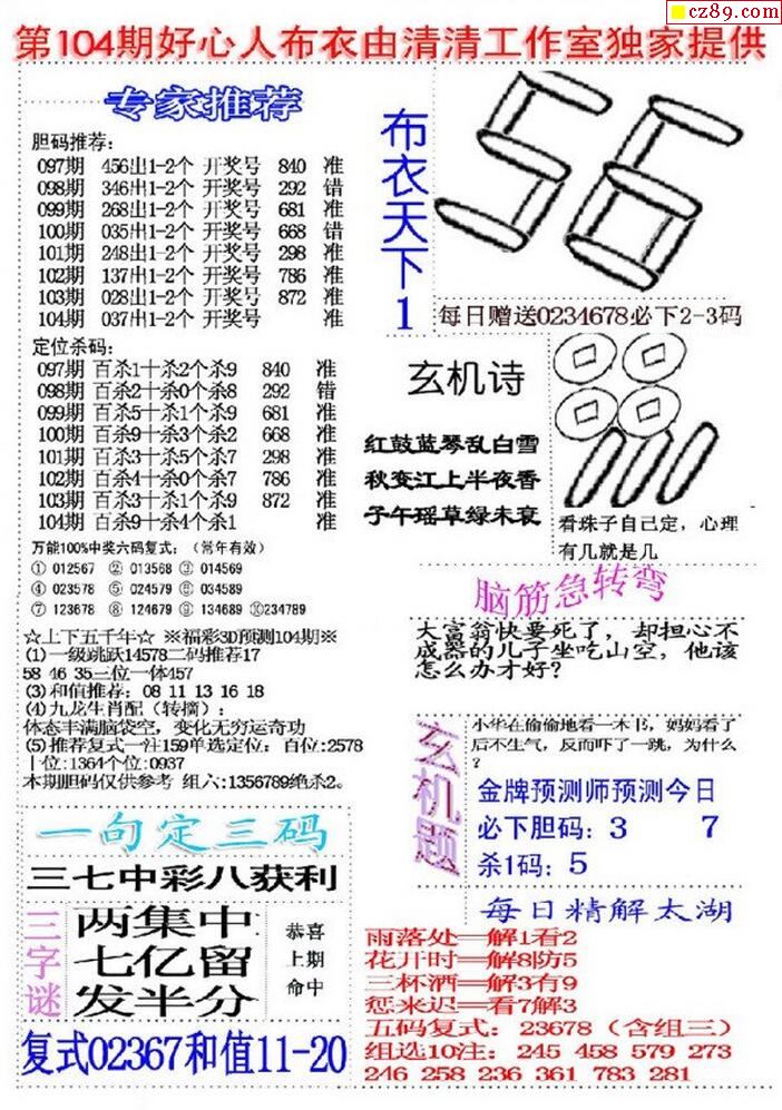 2020104期3D图谜汇总(八)