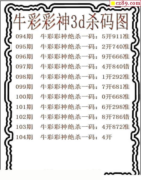 牛彩版3D预测彩报图25年330期打印版