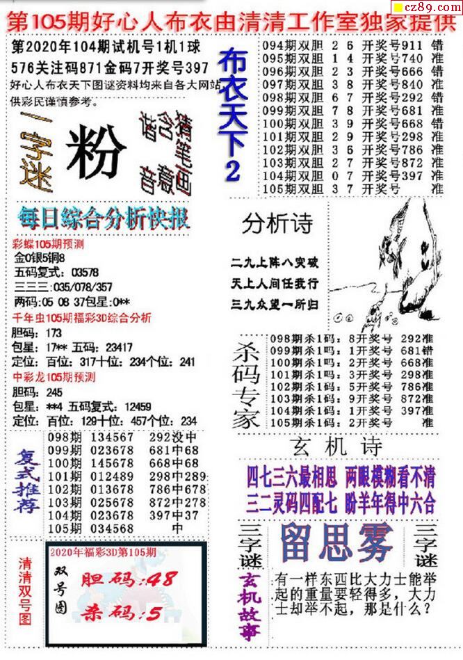 2020105期3D图谜汇总(八)
