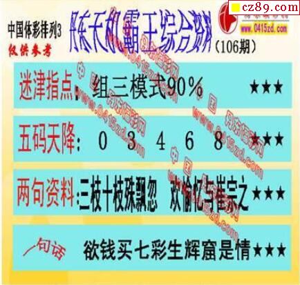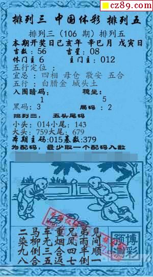 2020年106期牛彩网体彩P3画迷图谜汇总分享