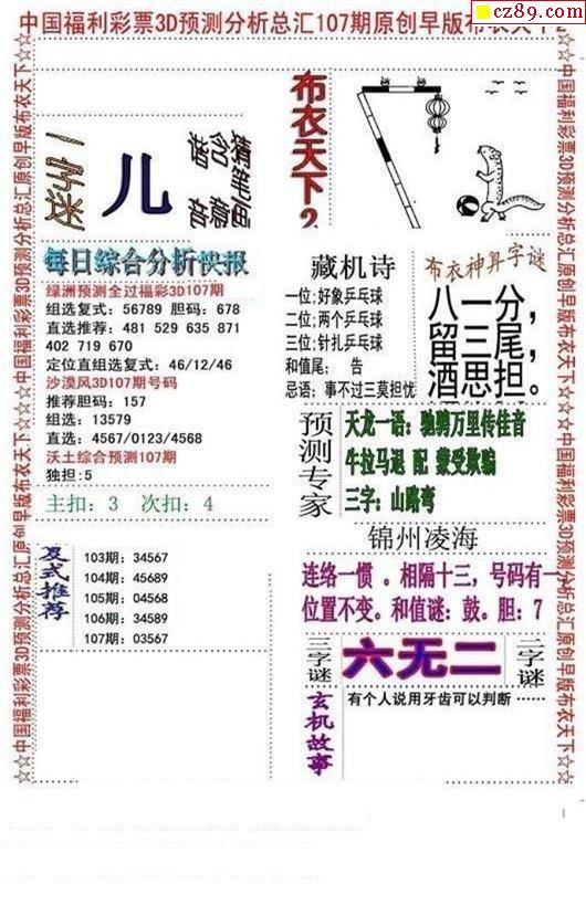 2026081期3D图谜汇总(一)
