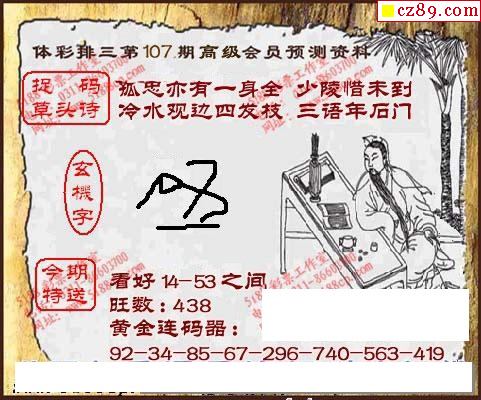 2020年107期牛彩网体彩P3画迷图谜汇总分享