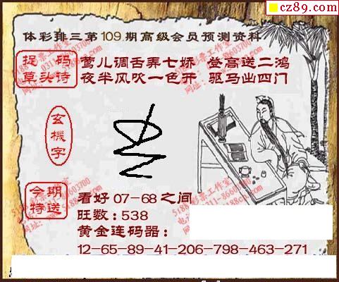 2020年109期牛彩网体彩P3画迷图谜汇总分享