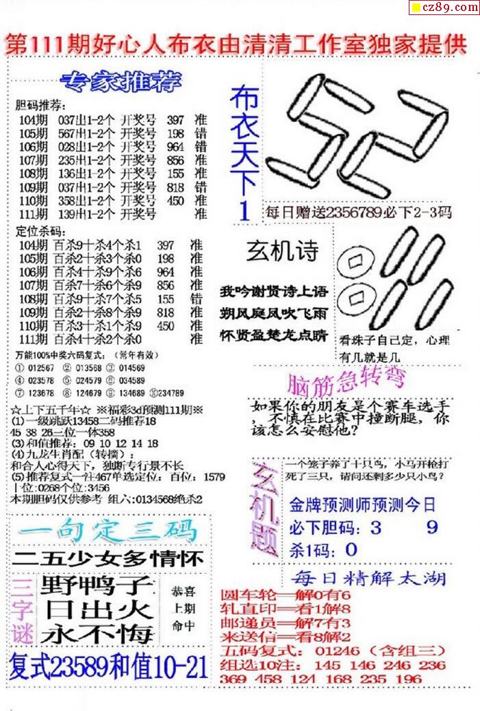 牛彩版3D字谜彩报图25年339期打印版