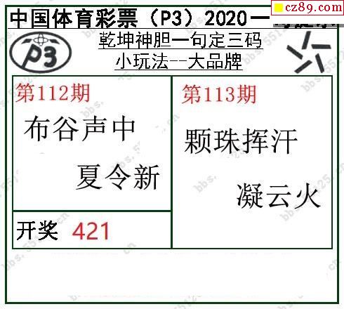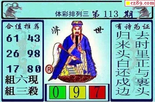 2020年113期牛彩网体彩P3画迷图谜汇总分享