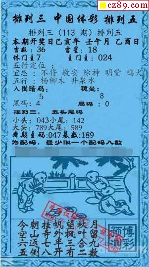 体彩P32025年333期 5188系列全图谜