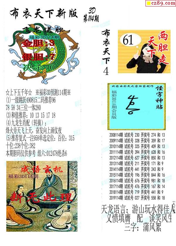 2020114期3d图谜汇总(五)