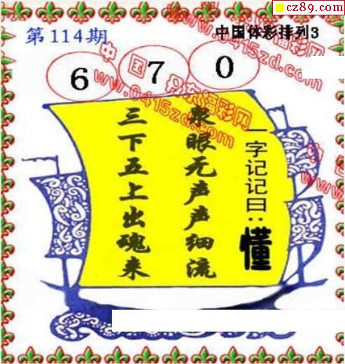 2020年114期牛彩网体彩P3画迷图谜汇总分享