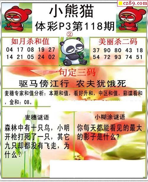 2020年118期牛彩网体彩P3画迷图谜汇总分享