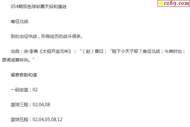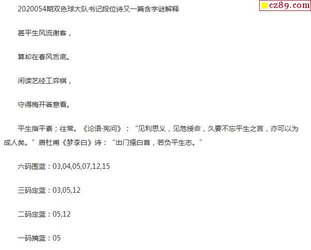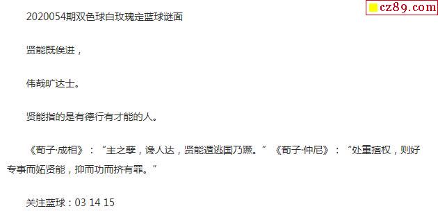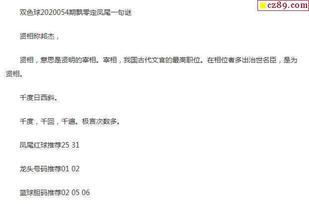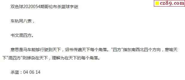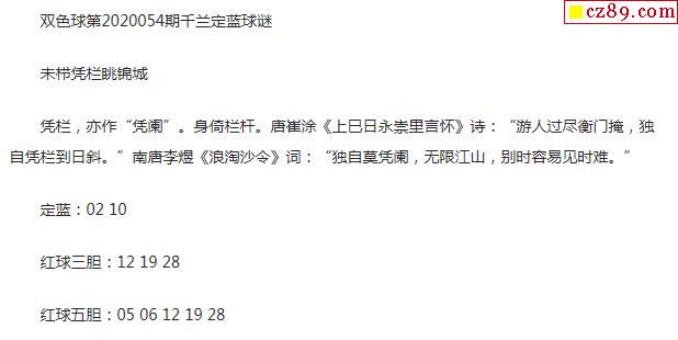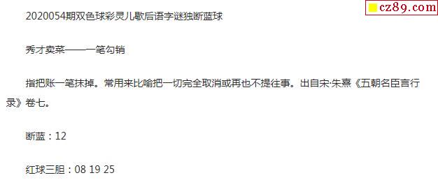 2020年054期牛彩网双色球字迷图谜汇总