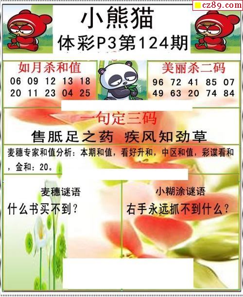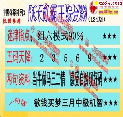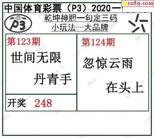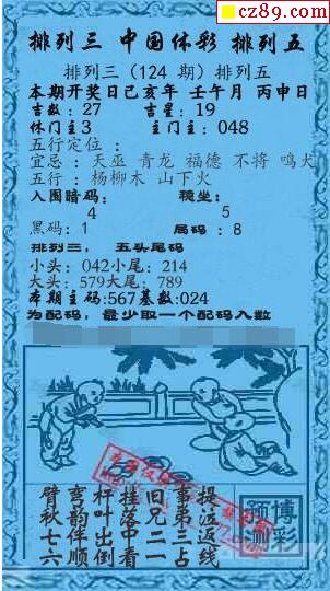 2020年124期牛彩网体彩P3画迷图谜汇总分享