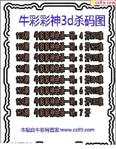 牛彩版3D预测彩报图25年337期打印版