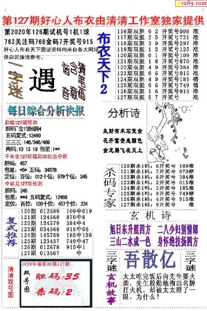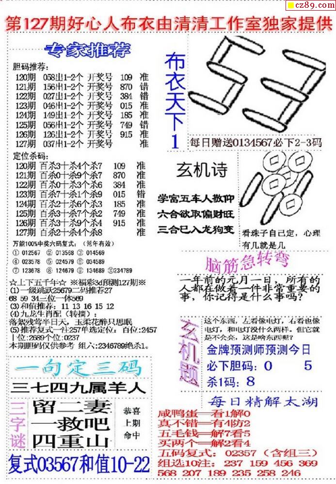 老夫子布衣2025342期3d图谜