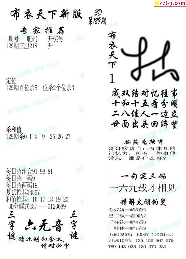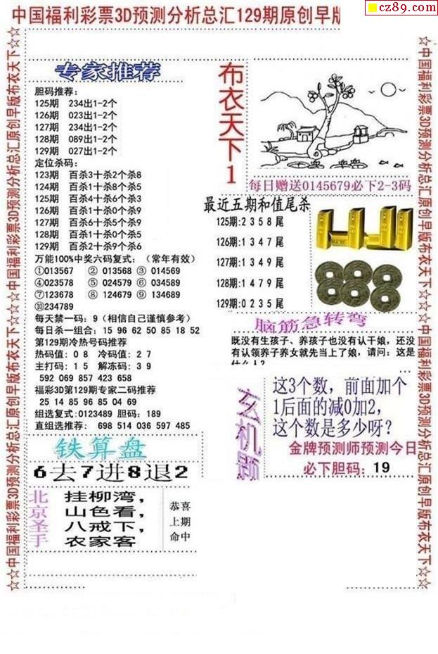 2020129期3d图谜汇总(五)
