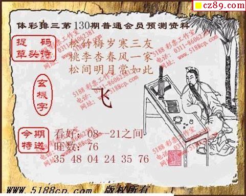 2020年130期牛彩网体彩P3画迷图谜汇总分享