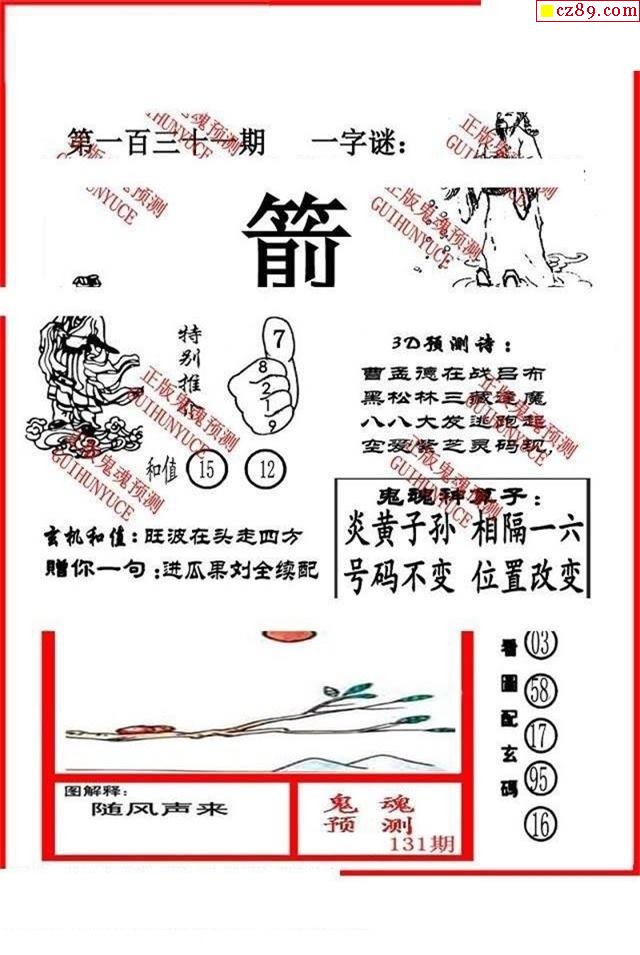 鬼车杀码2025335期3d图谜(原创)