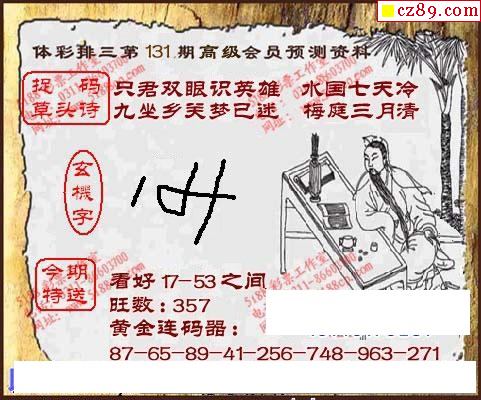 2020年131期牛彩网体彩P3画迷图谜汇总分享