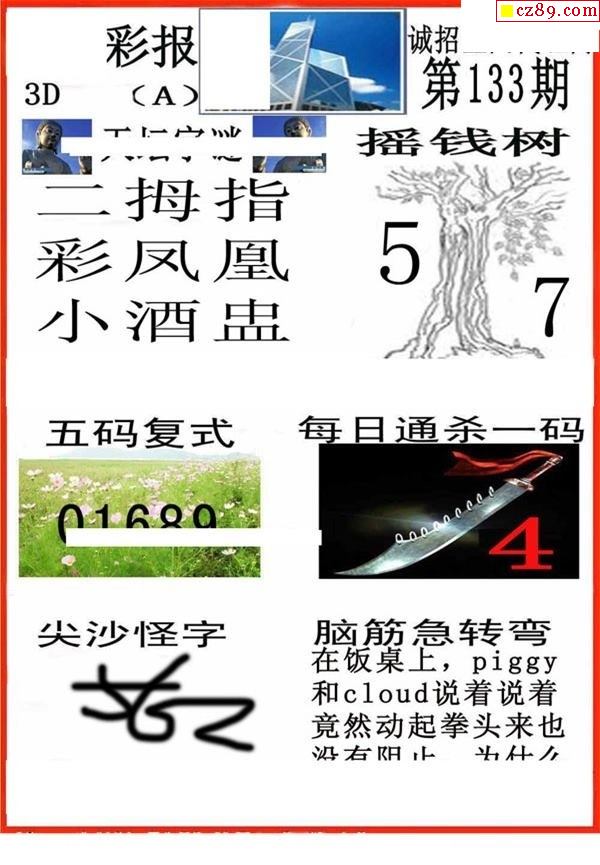 牛彩版3D字谜彩报图25年341期打印版